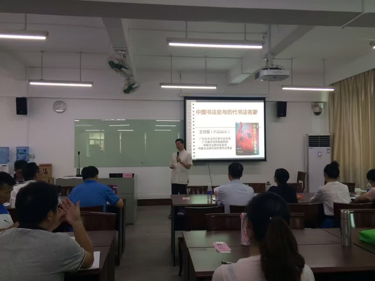 2016年7月23日,王世国先生应邀在广州市广播电视大学,为省教育厅举办的暑假中小学书法师资培训班讲授“历代名家名作综述与评点”。