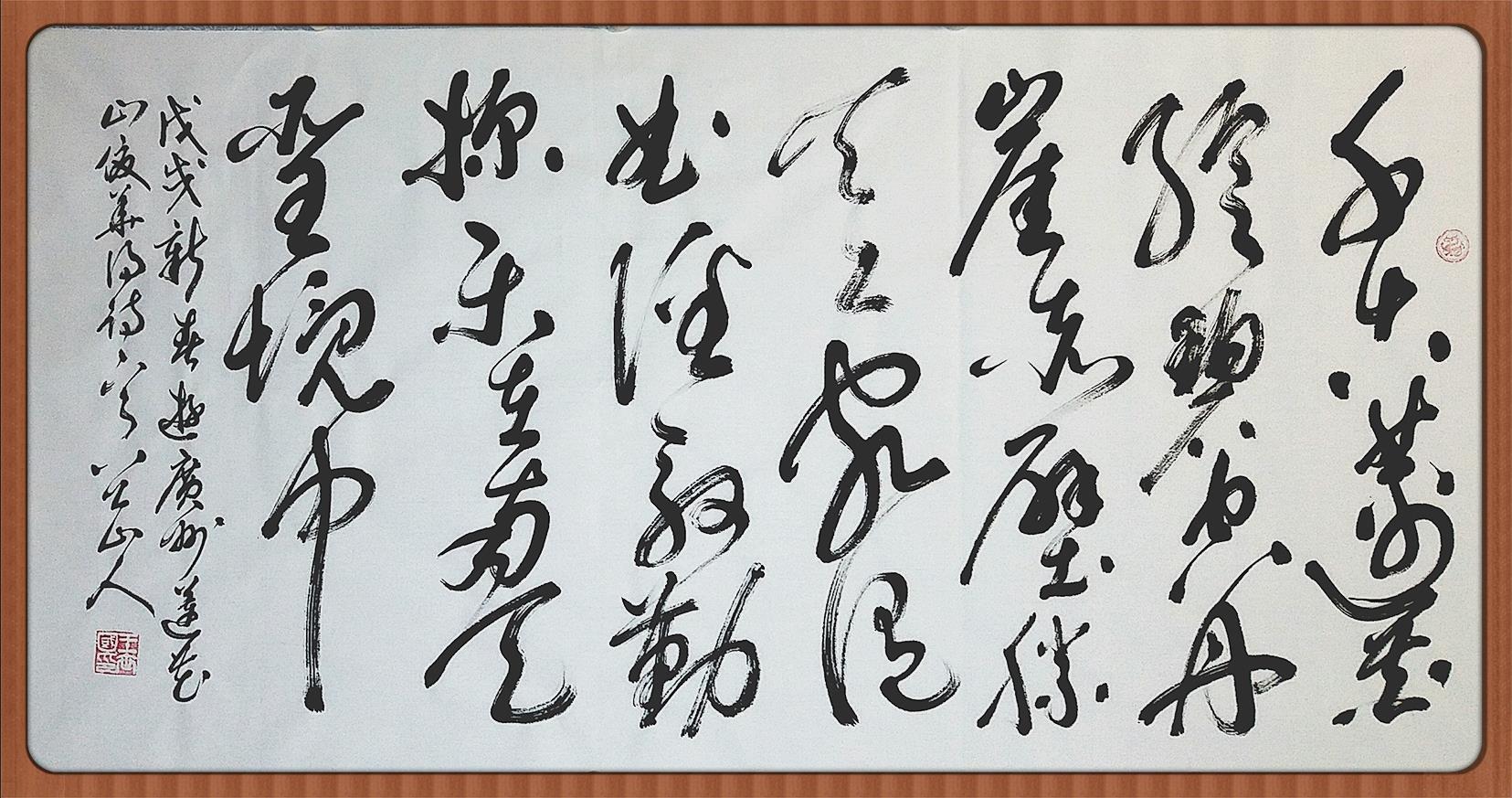 新春伊始,游广州莲花山,夫人俊华作诗一首,八公山人王世国以狂草书之: