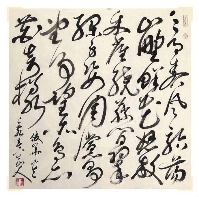 八公山人狂草斗方《如梦令·禾雀花》,杨俊华填词