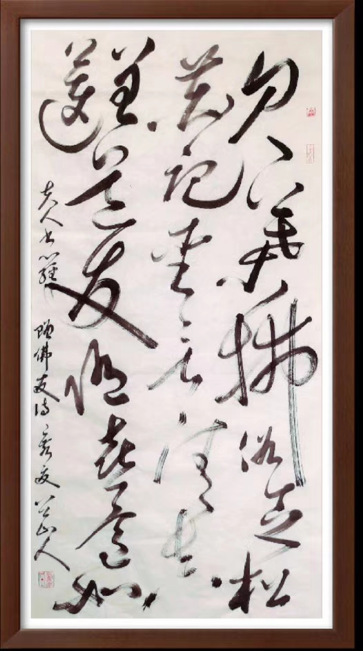夫人书《心经》赠佛友并作小诗一首,八公山人特以狂草书之