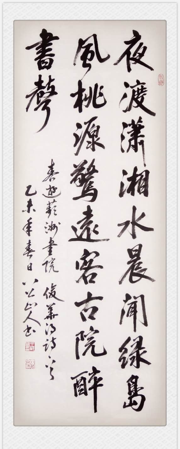 王世国行书俊华小诗《春游萍洲书院》 “夜渡潇湘水,晨闻绿岛风。桃源惊远客,古院醉书声。”