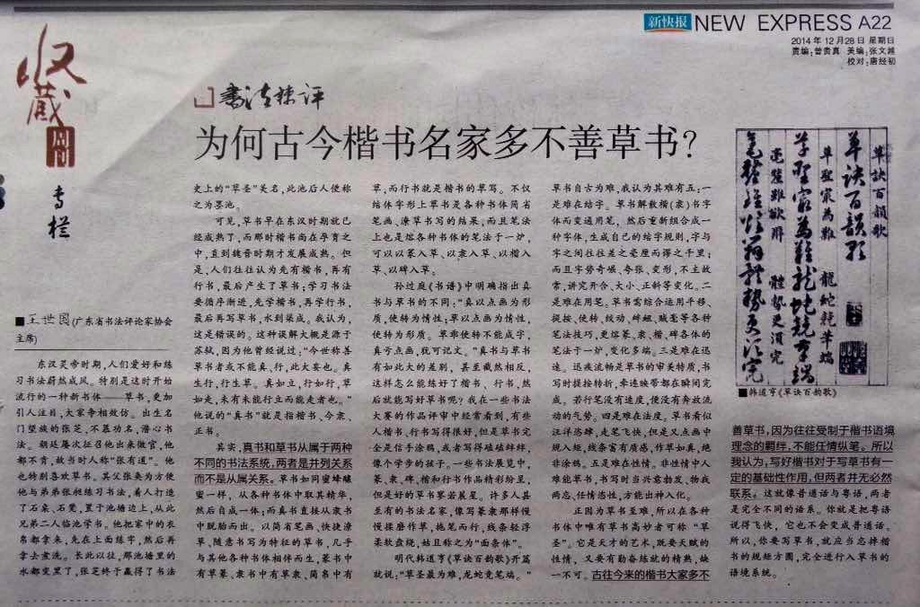 王世国【书法辣评】:为何古今楷书名家多不善草书