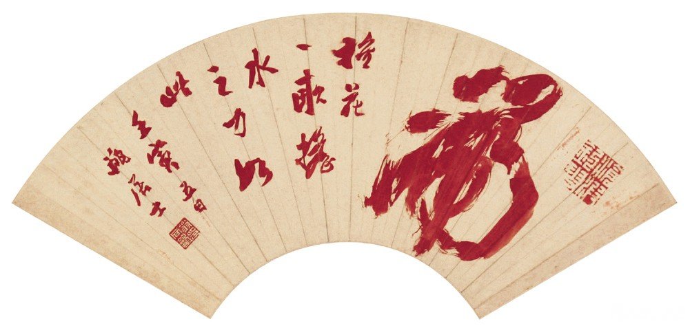 翁同龢书写的“虎”字扇面