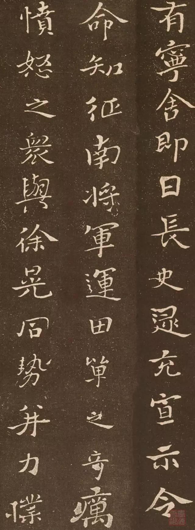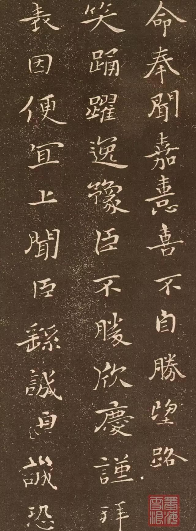 正是在这样的基础上,钟繇从东汉以来的民间书法中,集中起那些冲破隶书规矩,方正平直、简省易写的成分,以横、捺的新笔画,代替了隶书的藏锋、翻笔的蚕头磔尾,并且参入篆书、草书的圆转笔画,从而创制了一种堪称后世准则的楷书。钟繇凭借自己的政治地位和影响,将楷书体推广开来。他本人也身体力行,将这种新书体运用到他的政治活动中,写下了一些中国现存最早的楷书名作。