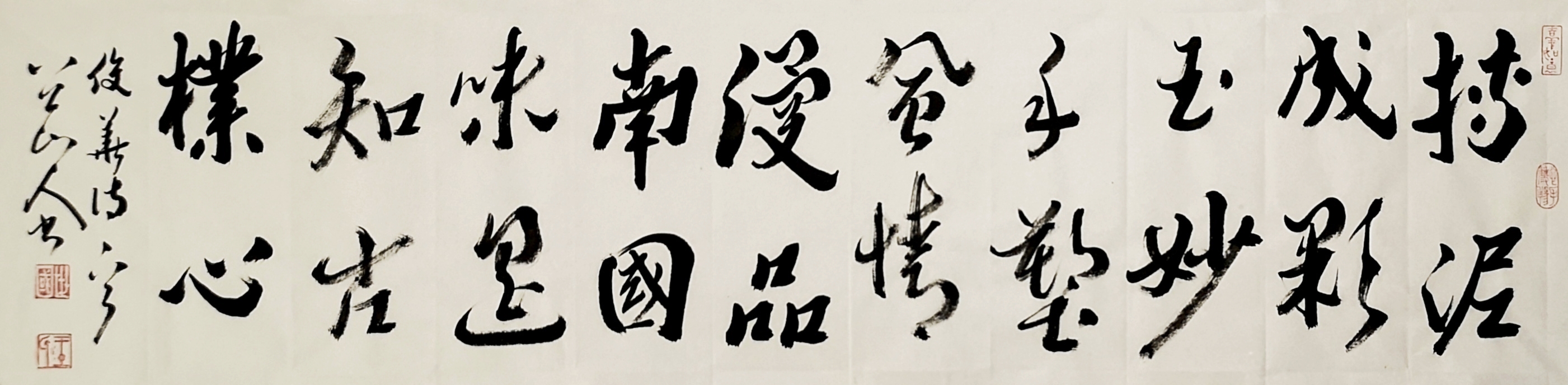 王世国近作行书《杨俊华·观佛山柏林陶艺馆》: